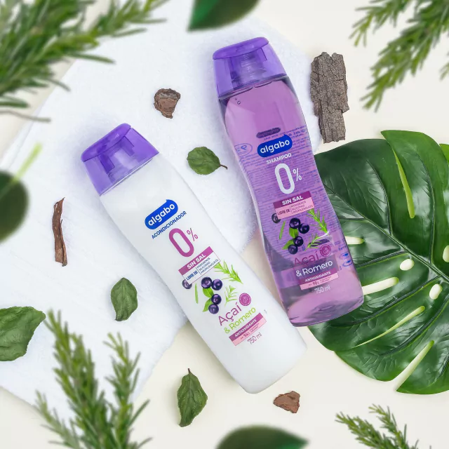 Acaí & Romero: es rico en vitaminas y minerales con un efecto antioxidante sobre el cabello protegiéndolo del envejecimiento, facilita el peinado, lo desenreda facilitando el peinado y deja una agradable fragancia.