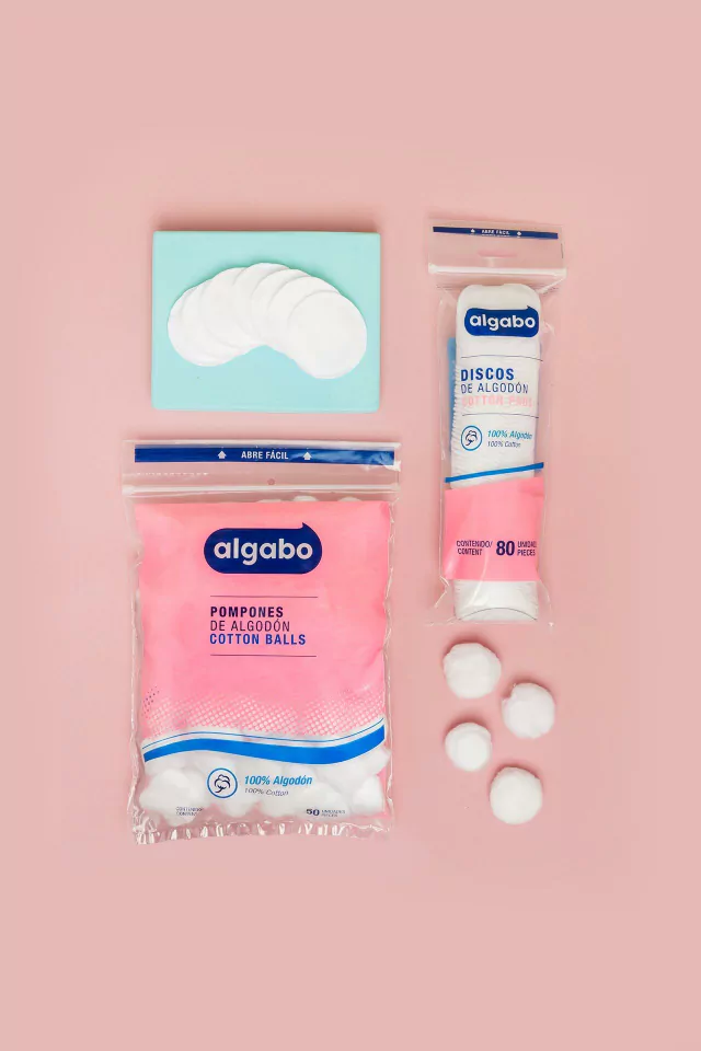 Su diseño absorbente permite combinarlo con el Agua Micelar Algabo para limpiar las impurezas.