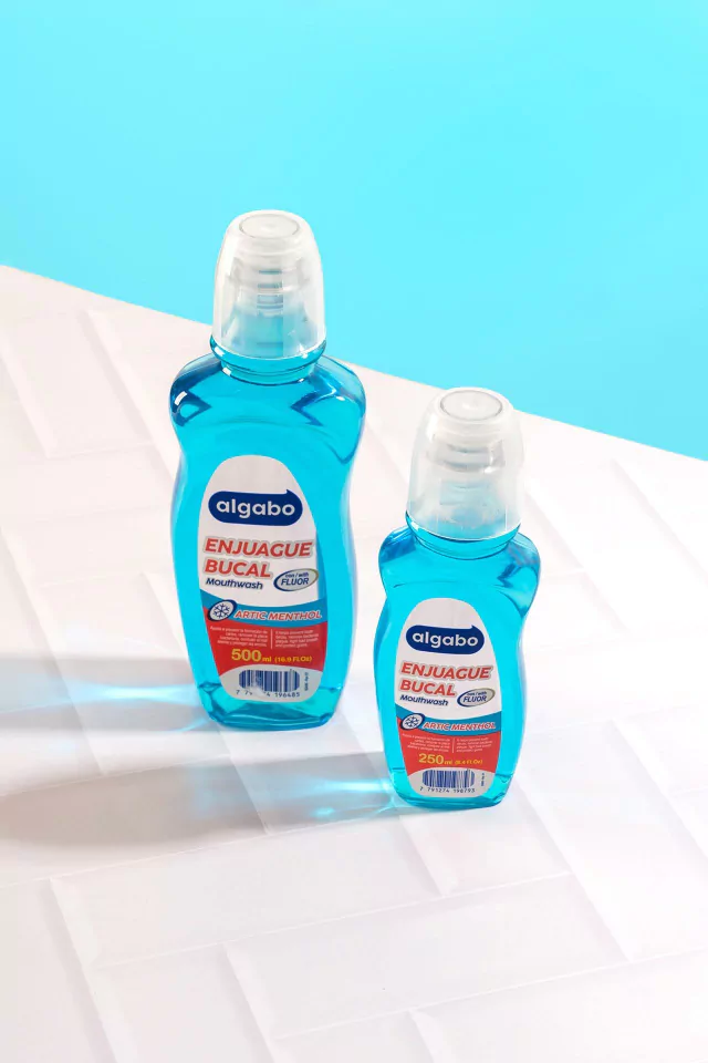 El Enjuague bucal Algabo proporciona una protección prolongada, entregando una duradera sensación de limpieza y frescura en su boca.