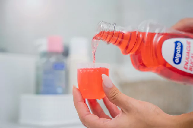 El Enjuague bucal Algabo proporciona una protección prolongada, entregando una duradera sensación de limpieza y frescura en su boca.