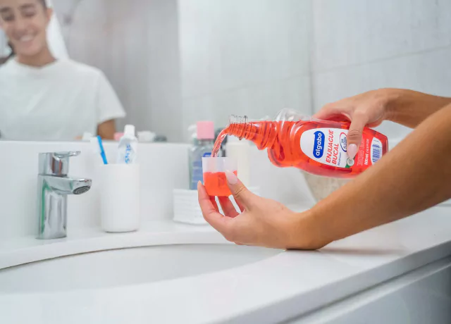 El Enjuague bucal Algabo proporciona una protección prolongada, entregando una duradera sensación de limpieza y frescura en su boca.